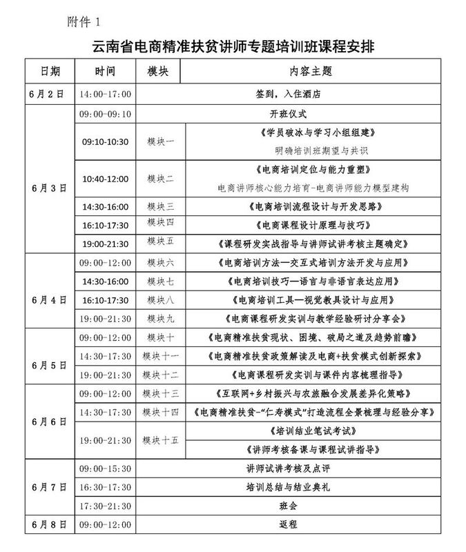 《云南省电商精准扶贫讲师专题培训班课程安排.doc》下载见附件