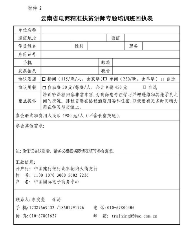 《云南省电商精准扶贫讲师专题培训班报名回执表.doc》下载见附件