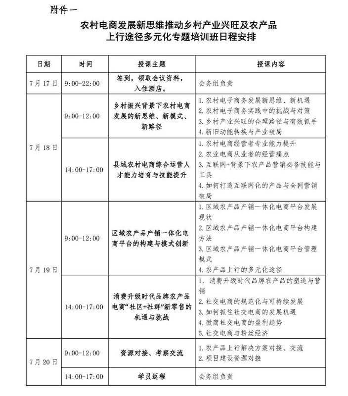 《农村电商发展新思维推动乡村产业兴旺及农产品上行途径多元化专题培训班日程安排.doc》下载见附件