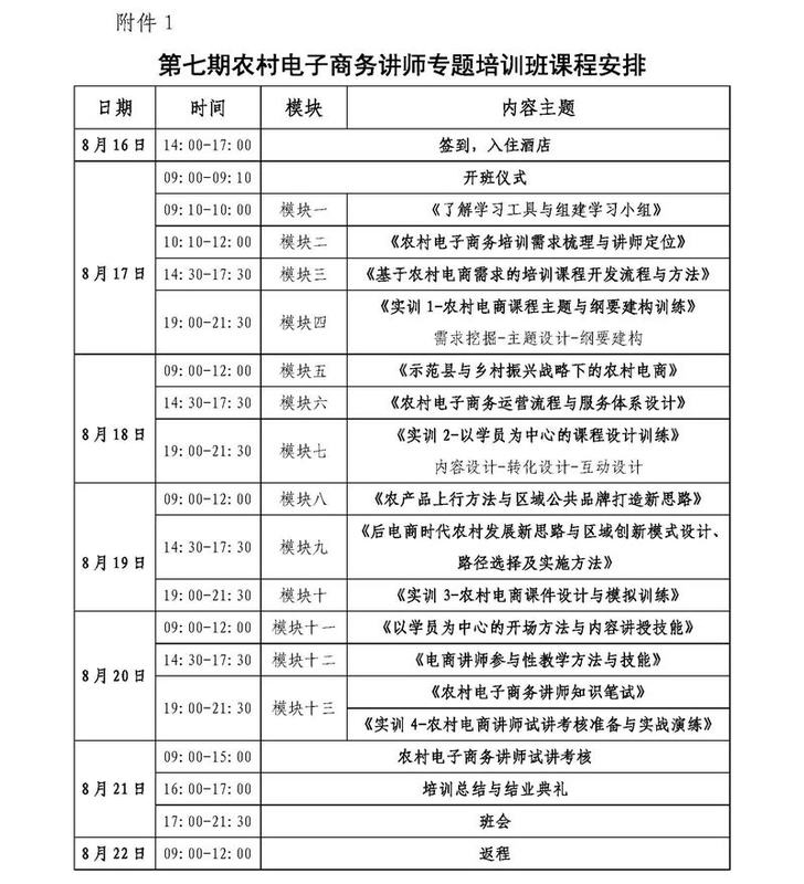 《第七期农村电子商务讲师专题培训班课程安排.doc》下载见附件