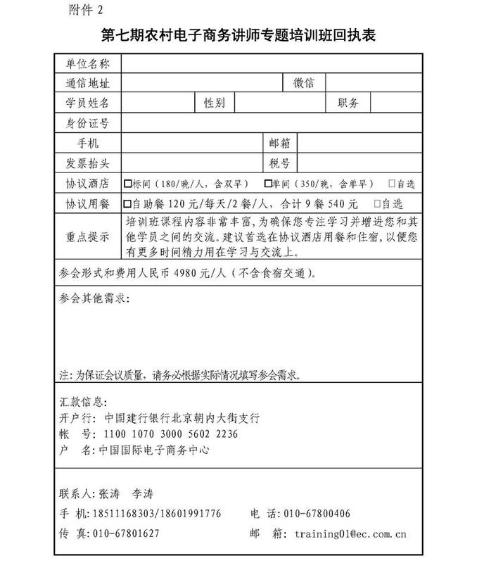 《第七期农村电子商务讲师专题培训班回执表.doc》下载见附件