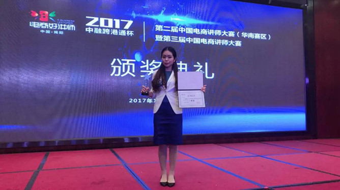 我是一名来自广西的90后电商讲师。2017年2月,一个偶然的机会,我在网上看到首届中国电商讲师大赛的视频,看完视频后,我就被大赛的高规格以及选手们的气场、智慧和专业度深深地吸引了。为了更好地提升自己,走向更大的电商讲师舞台,我在既兴奋又紧张的期待中,毫不犹豫地报名了。