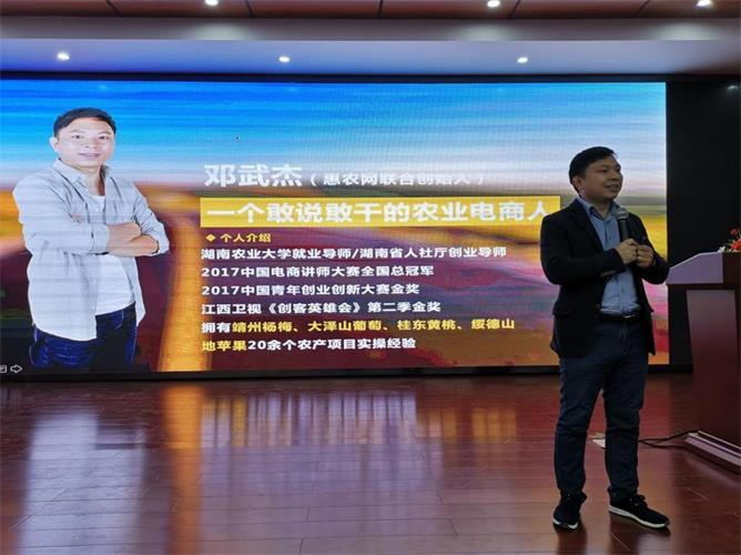 惠农网联合创始人、团中央中国青年创业导师,第二届中国电商讲师大赛全国总冠军邓武杰与大家分享了创新创业的趋势和模式,方法与工具、策略与风险控制,给青年电商创业指明了方向。