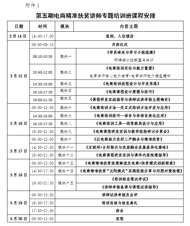 一、培训内容和课程安排(见附件一)