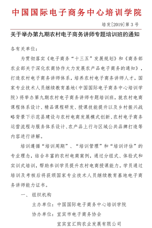 关于举办第九期农村电子商务讲师专题培训班的通知
