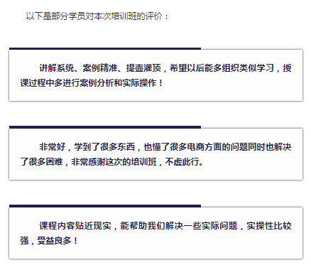 经过几天的培训,参训学员对于本次培训班的教学组织,授课专家和教务管理给予了很高的评价。