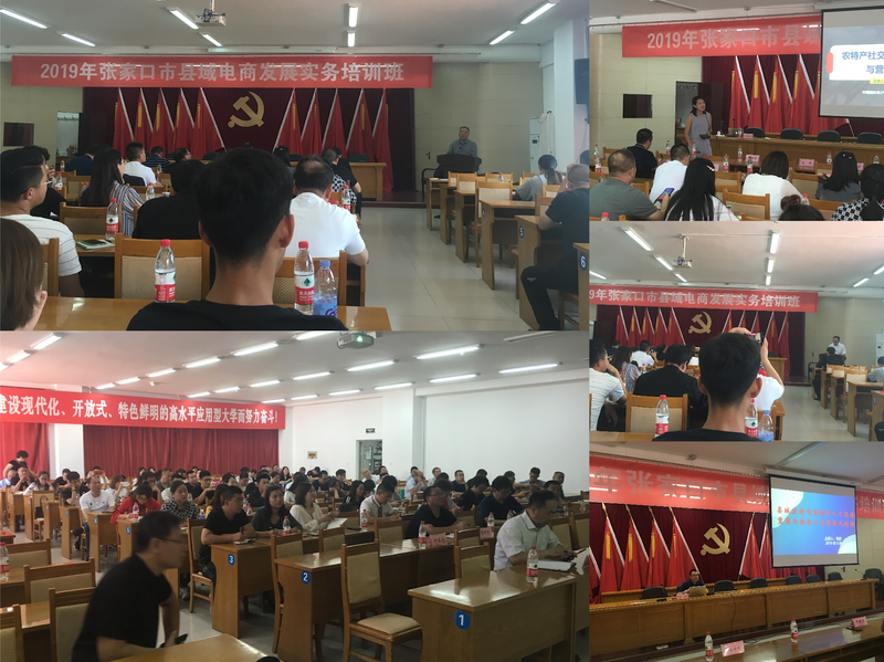 为加快推进张家口市县域电子商务发展,进一步激发电商市场主体活力,促进农产品上行,助力脱贫攻坚,9月4日,中国国际电子商务中心联合张家口市商务局、河北北方学院,在河北北方学院逸夫图书楼报告厅举办了2019年张家口市县域电商发展实务培训班,万全、怀安、尚义、沽源、阳原等区县的分管副县长和全市各区县的商务部门主管局长、电商科长,全市电商企业、实体企业负责人,河北北方学院师生等160余人参加培训学习。