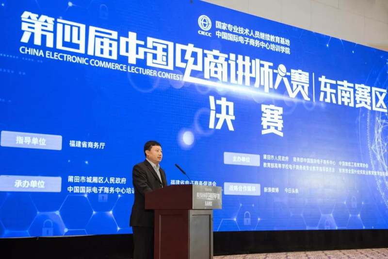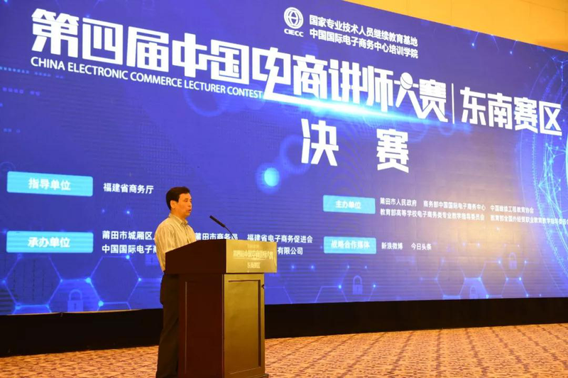 第四届中国电商讲师大赛东南赛区比赛是在福建省商务厅指导下,由莆田市人民政府、中国国际电子商务中心、中国继续工程教育协会、教育部高等学校电子商务类专业教学指导委员会、教育部全国外经贸职业教育教学指导委员会共同主办,莆田市城厢区人民政府、莆田市商务局、福建省电子商务促进会、中国国际电子商务中心培训学院、福建润商网络技术有限公司联合承办,新浪微博及今日头条作为大赛战略合作媒体,为大赛提供流量及宣传支持。