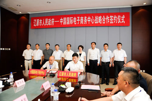 2016年7月6日上午,中国国际电子商务中心与辽源市人民政府在辽源宾馆举行战略合作协议签约仪式。会议由辽源市政府市长王立平主持,辽源市市委书记吴兰、中国国际电子商务中心党委书记姚广海先后致辞。阿里研究院、上海商派、东北袜业集团和金翼蛋品集团等企业代表也在会议中积极发言,为辽源电商发展献计献策。随后,中国国际电子商务有限公司副总裁胡杨与辽源市政府副市长白三迎代表双方正式签署战略合作框架协议,在此框架内,双方将发挥各自优势,在电子商务研究规划、人才培训、产业孵化、高端展会、电商资源对接等方面展开合作,共同推动辽源经济新发展。培训学院副院长李伟、吉林代表处总代表孙维杰陪同出席了签约仪式。
