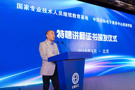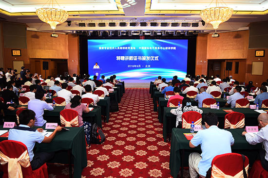 9月2日,由中国国际电子商务中心培训学院主办的“国家专业技术人员继续教育基地第二批特聘讲师证书颁发仪式暨2016年县域电商发展模式创新专题研讨会”在京顺利召开。中国国际电子商务中心培训学院经认真研究、综合评定,从135位来自政府部门、科研机构、行业组织以及知名企业的报名和推荐人选中,聘任43位作为“国家专业技术人员继续教育基地”第二批讲师。