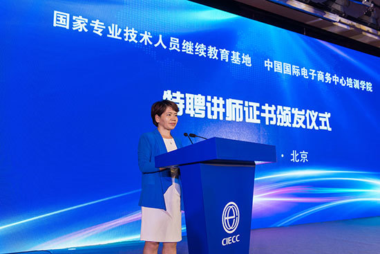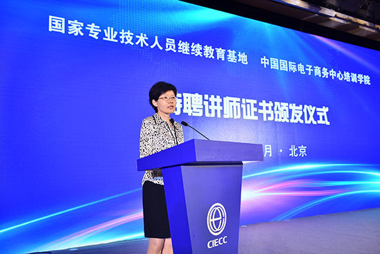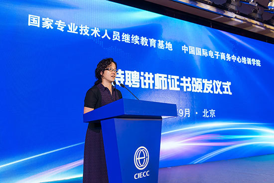 商务部电子商务和信息化司副巡视员贾舒颖为特聘讲师颁发证书