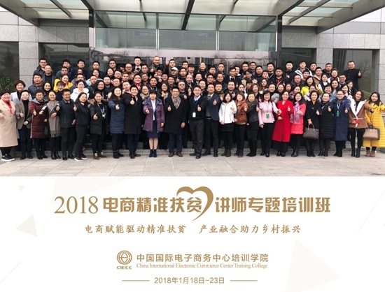 为全面有效推动国家精准扶贫的战略部署,2018年1月19日-23日,中国国际电子商务中心培训学院主办的“首期全国电商精准扶贫讲师专题培训班”在北京圆满结束。来自甘肃、内蒙古、宁夏、陕西、青海、吉林、四川、安徽、黑龙江、新疆、云南、河南、广西、海南、西藏等25个省、自治区、直辖市的地方基层干部、职业院校学科带头人、专职教师、电商企业负责人、培训机构专职培训师共计115人踊跃报名参加学习。