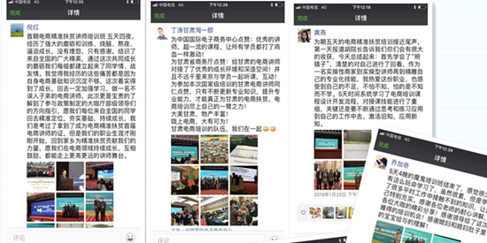 甘肃烁今进出口贸易有限公司-张丰丰:在这短短的五天里让我有了质的变化,从第一天来的茫然、不知所措到最后一天的满载而归!让我看到了中国国际电子商务中心的强大,看到一群专业的团队如何用他们独特的方式培养出一批批从事电商行业的人才!他们值得我们每一个人敬畏,他们是扶贫事业的榜样、领导者、指引者!感谢中国国际电子商务中心的所有老师和工作者,在这里说一声“你们辛苦了”。