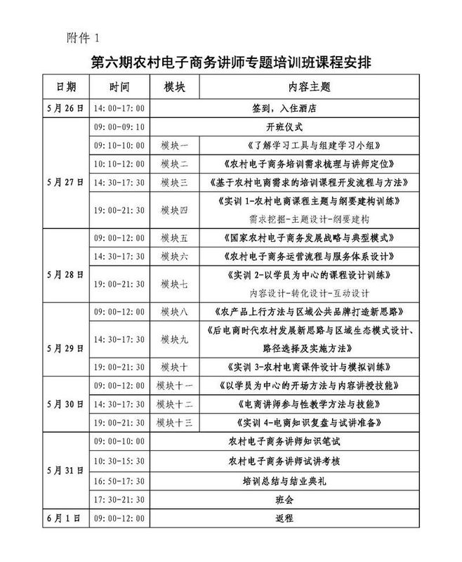 《第六期农村电子商务讲师专题培训班课程安排.doc》下载见附件