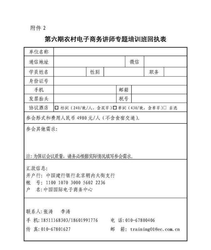《第六期农村电子商务讲师专题培训班回执表.doc》下载见附件